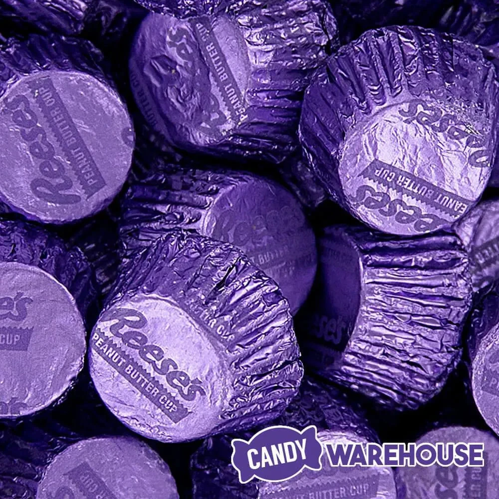 Bag contains 200 pieces of Purple Foiled Mini Reese’s Peanut Butter Cups… that’s 66.7 ounces of candy.