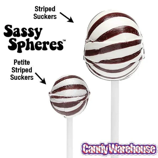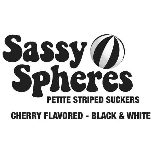 Bag contains 100 individually wrapped Cherry Sassy Suckers Black Striped Ball Lollipops.